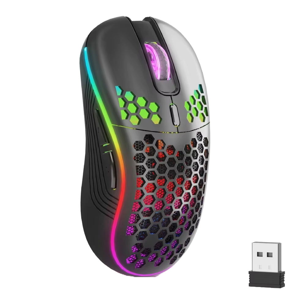 El ratón inalámbrico "Núcleo Fantasma" está diseñado para brindarte un control ultra preciso y una comodidad inigualable, gracias a su forma ergonómica que se adapta perfectamente a tu mano. Olvídate del cansancio y juega o trabaja durante horas sin molestias.